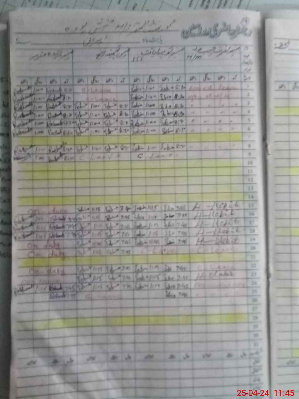 | Leave | Duty | Absent | Maternity | Medical | Ex- Pak |