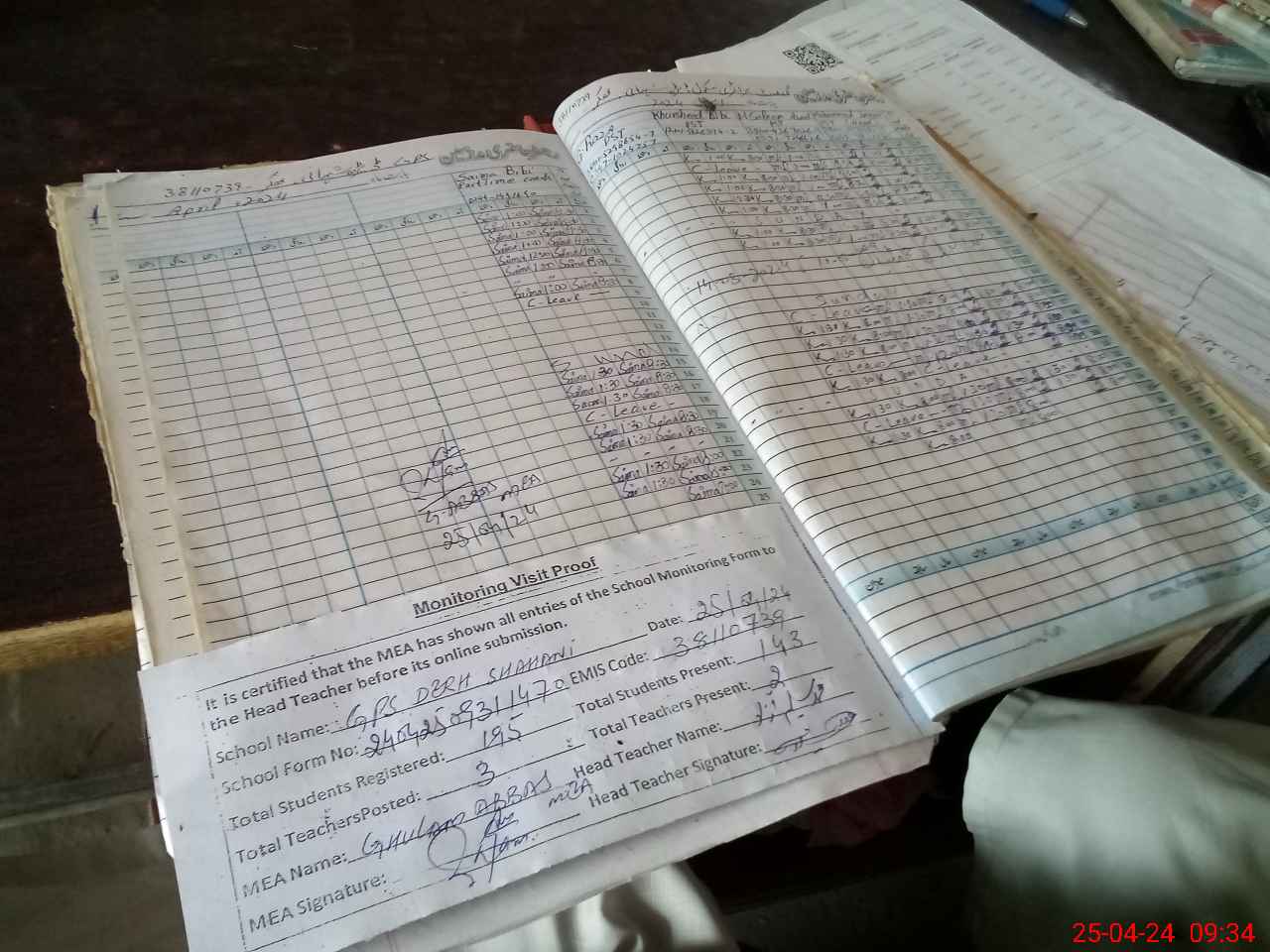 | Attendance Register | Head Teacher | MEA with School | Visit Proof |