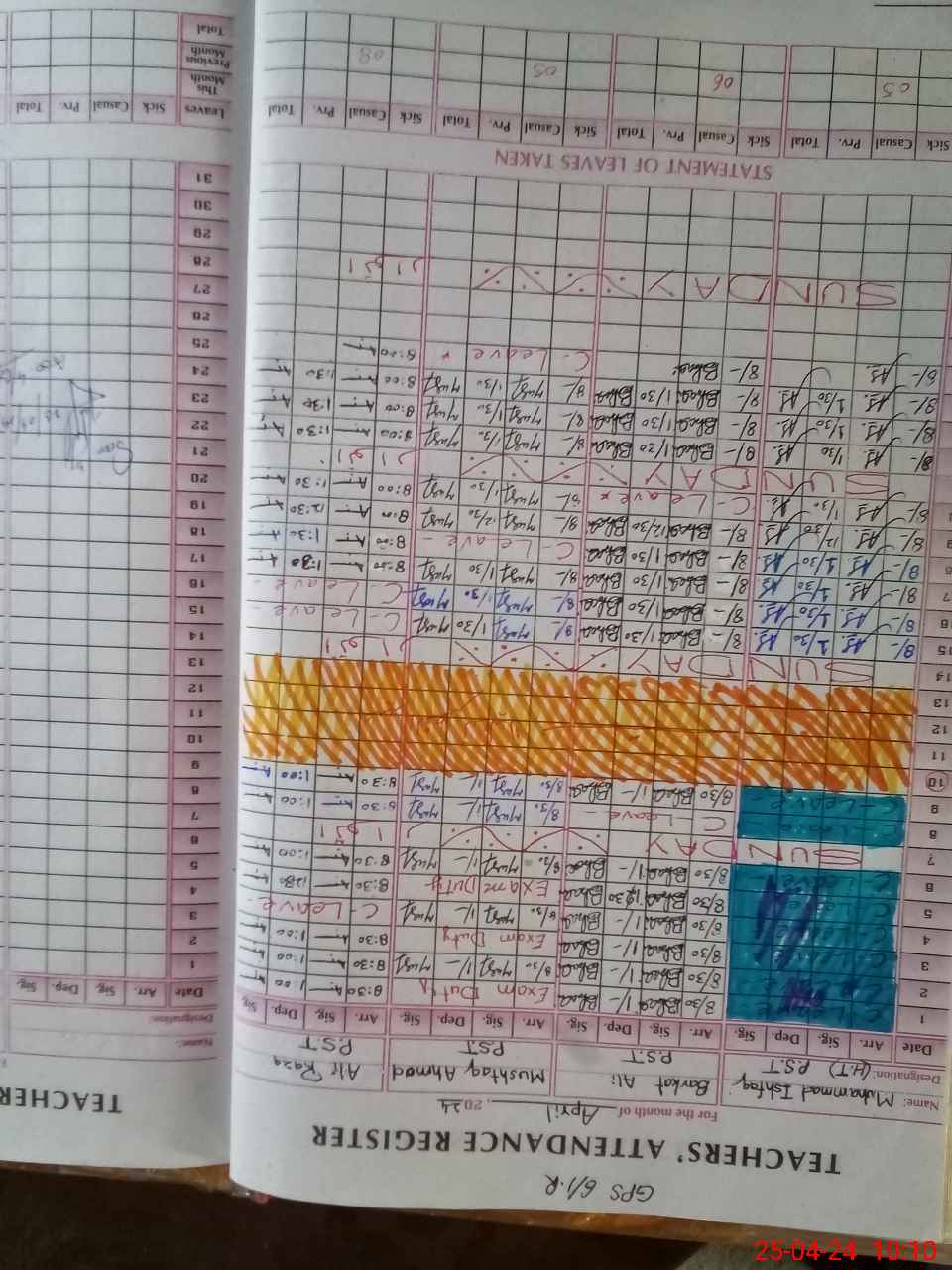| Leave | Duty | Absent | Maternity | Medical | Ex- Pak |