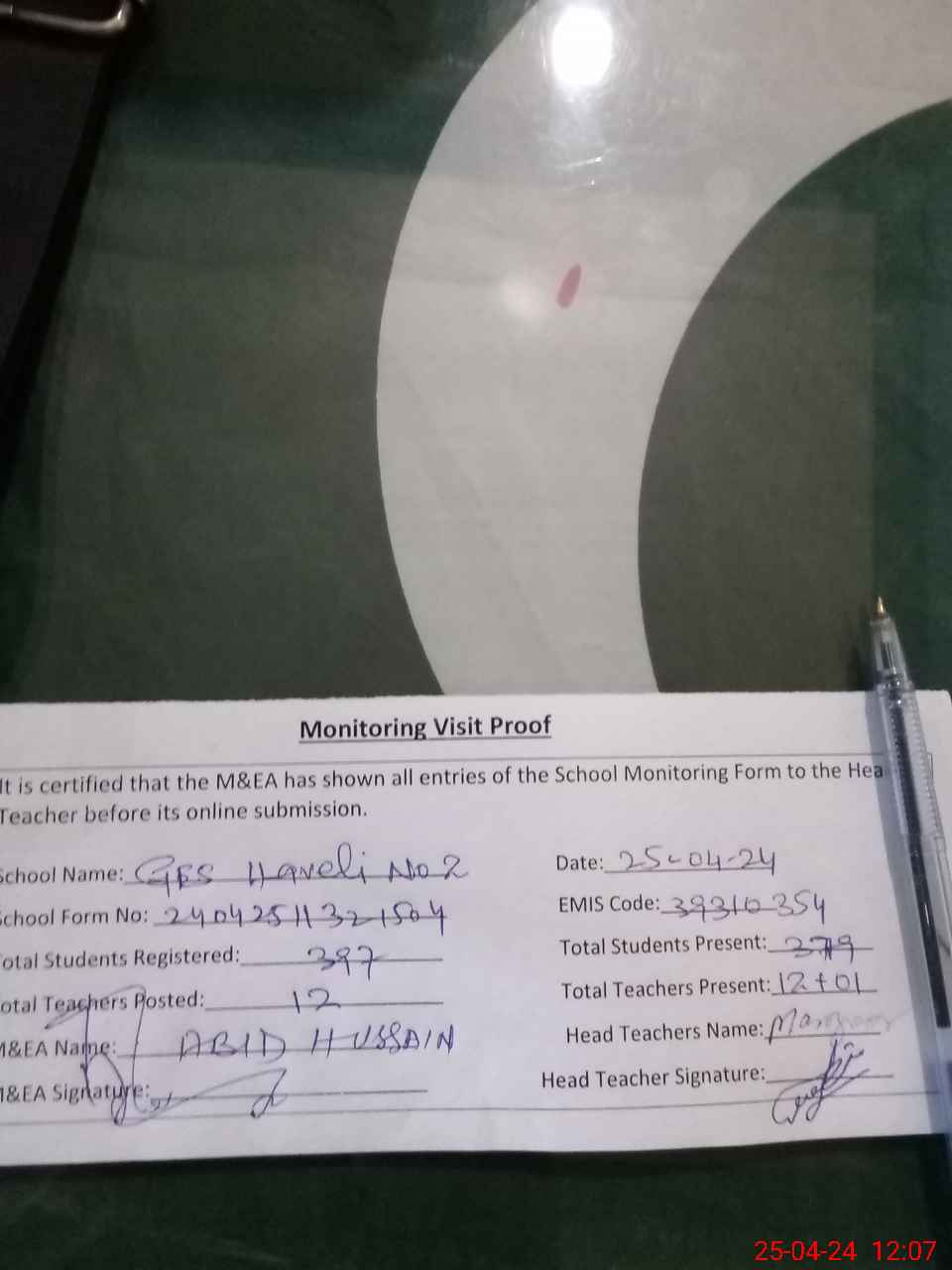 | EMIS Code: 39310354 | Name of School: GES HAVELI NO.2 | |||