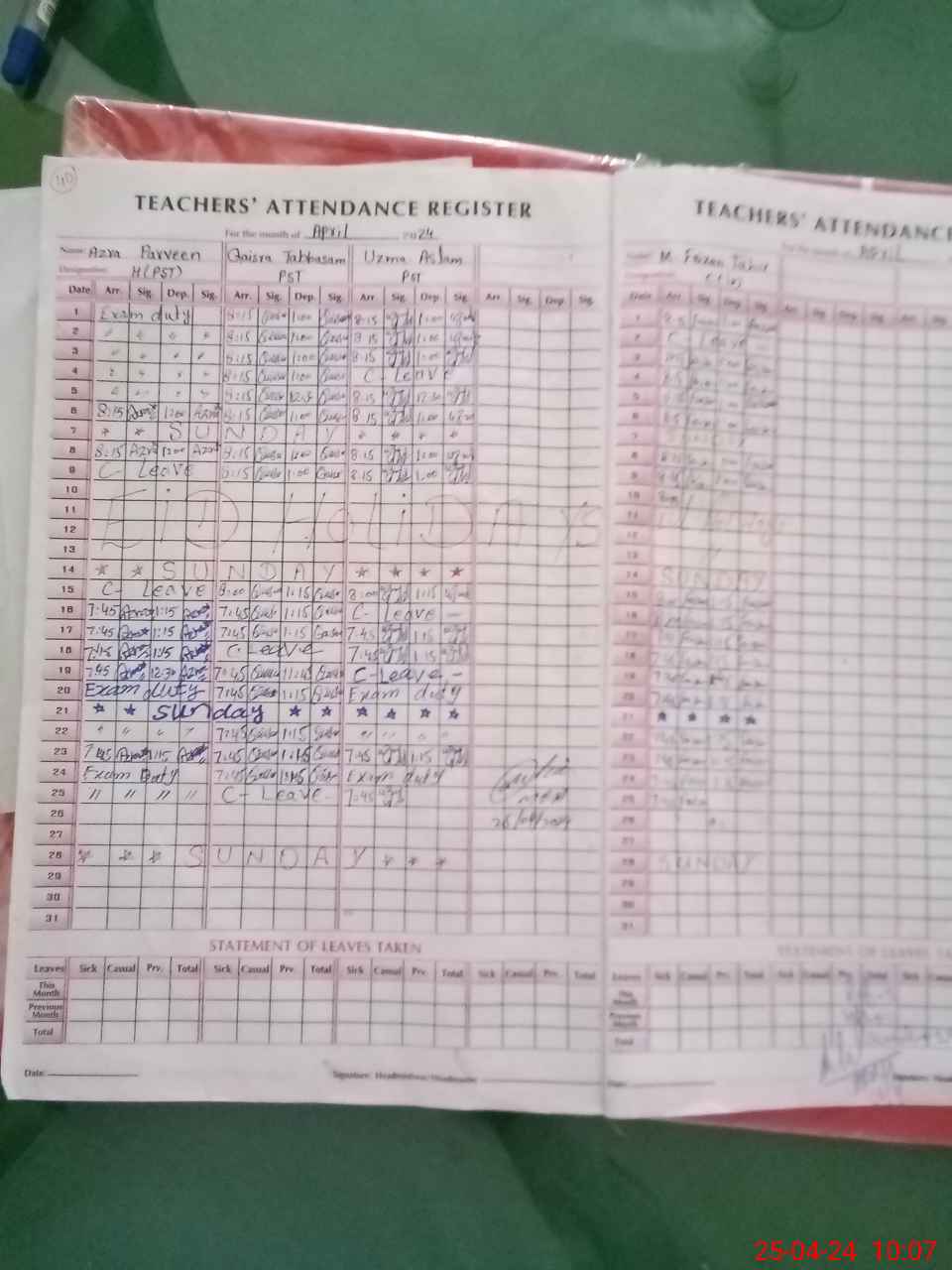| 32**** | Az**** Pe**** | 1 | 1 | 0 | 0 | 0 | 0 | 0 | 0 | 0 | 0 | 0 | Exam Duty |