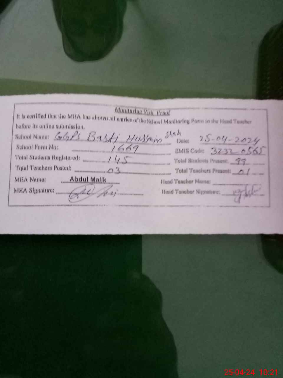 | EMIS Code: 32320565 | Name of School: GGPS BASTI HUSSAIN SHAH | |||