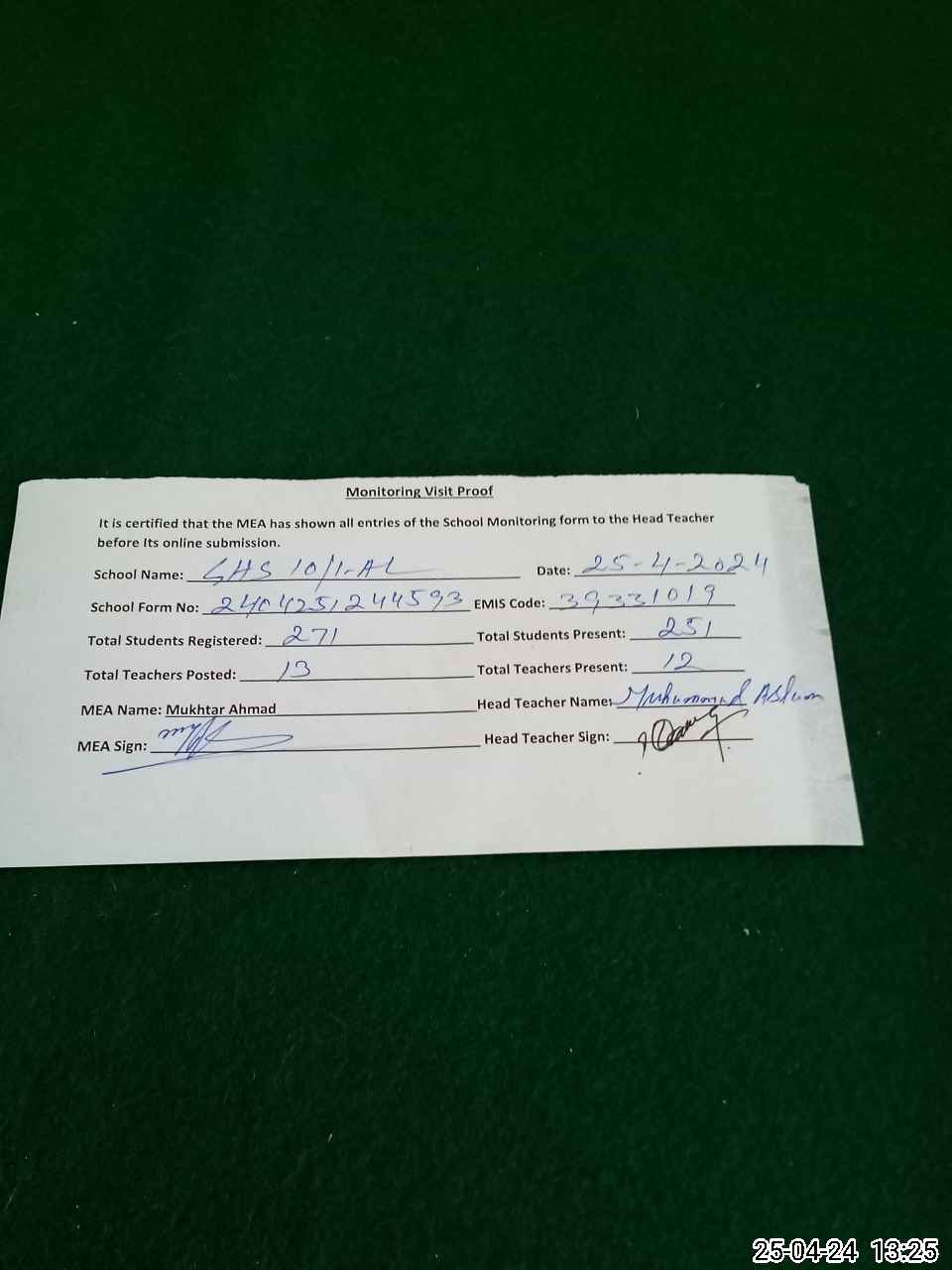 | EMIS Code: 39331019 | Name of School: GHS CHAK 10/1-AL | |||