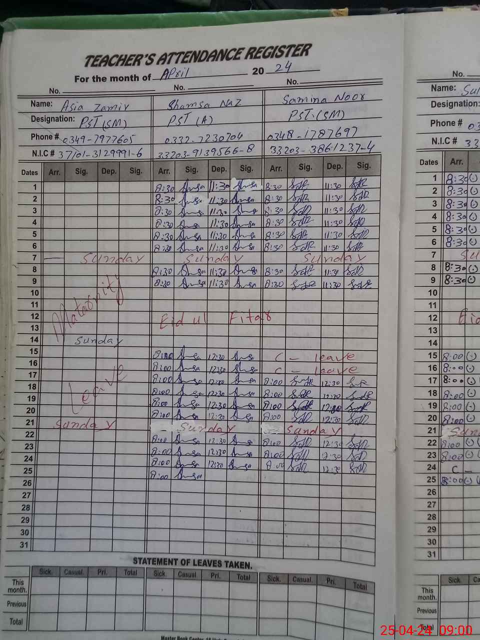| 37**** | As**** Za**** | PST | Regular | 0 | 0 | 0 | 0 | 0 | 0 | 0 | 0 | 0 | Maternity |