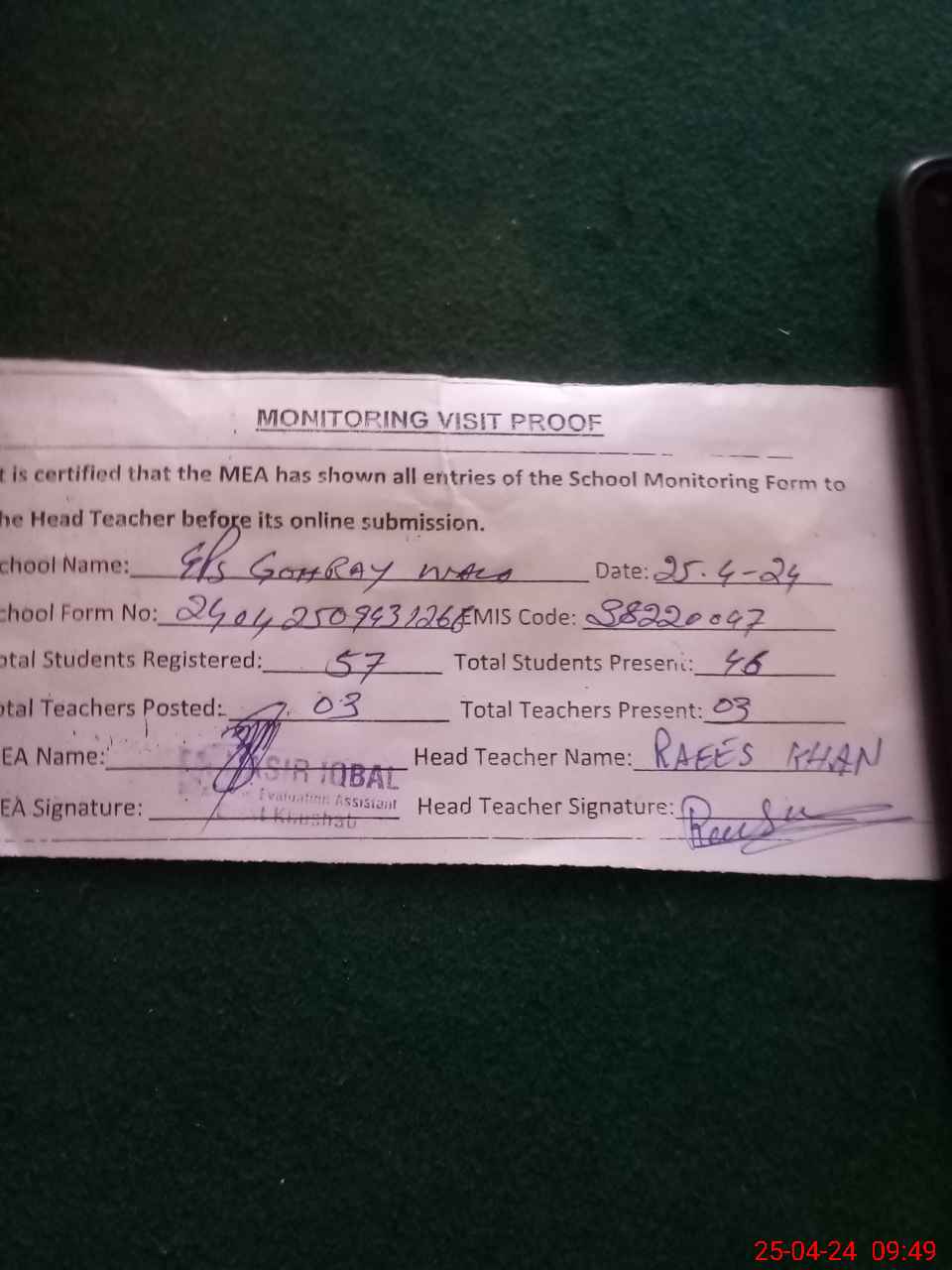 | EMIS Code: 38220047 | Name of School: GPS GOHRAY WALA | |||