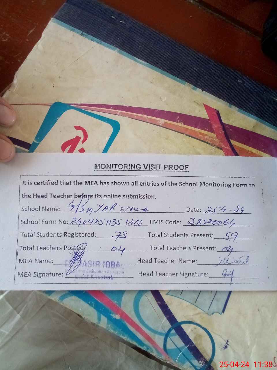 | EMIS Code: 38220064 | Name of School: GPS MUHAMMAD YAR WALA | |||