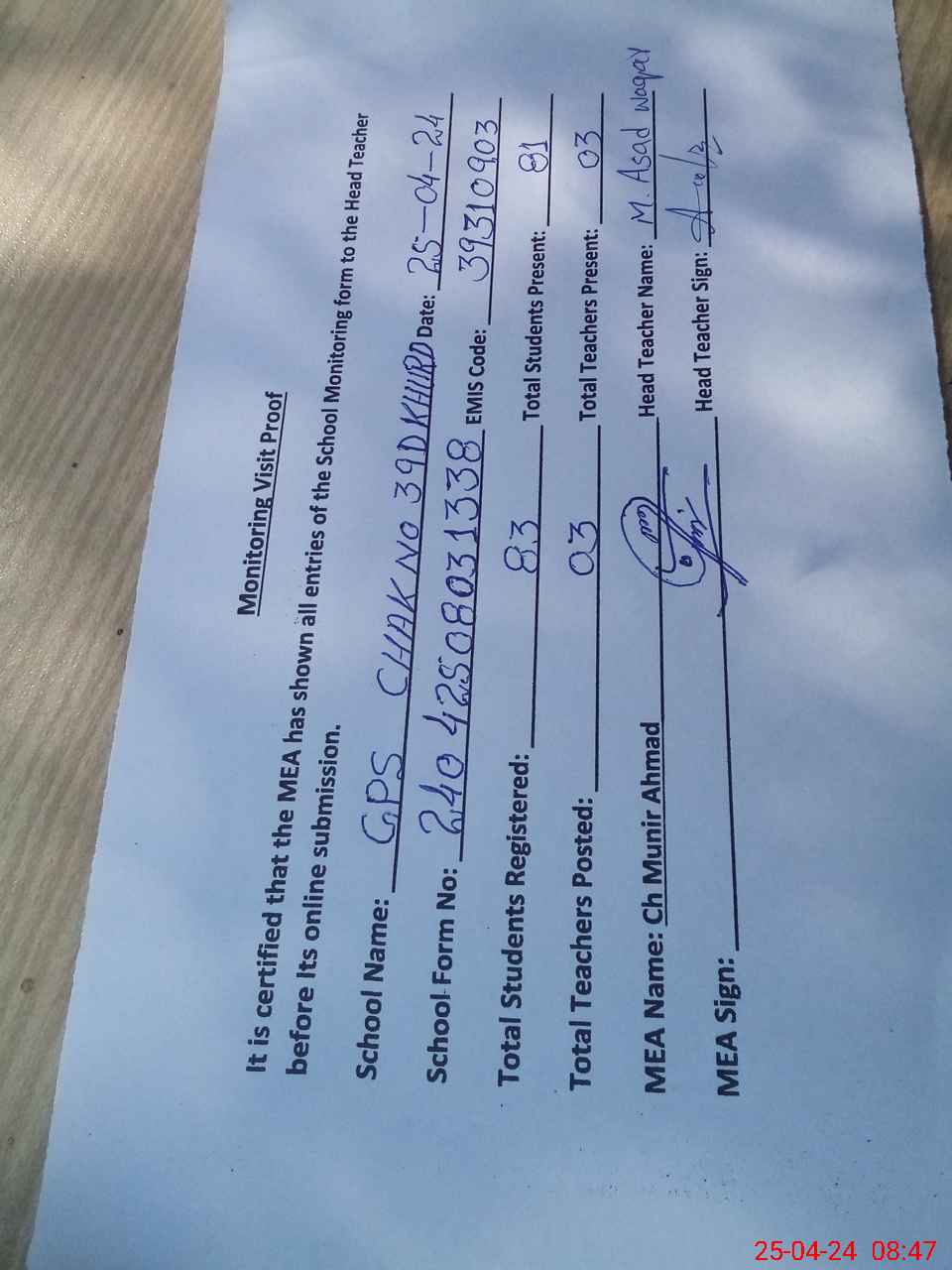 | EMIS Code: 39310903 | Name of School: GPS CHAK 43 D KHURD | |||