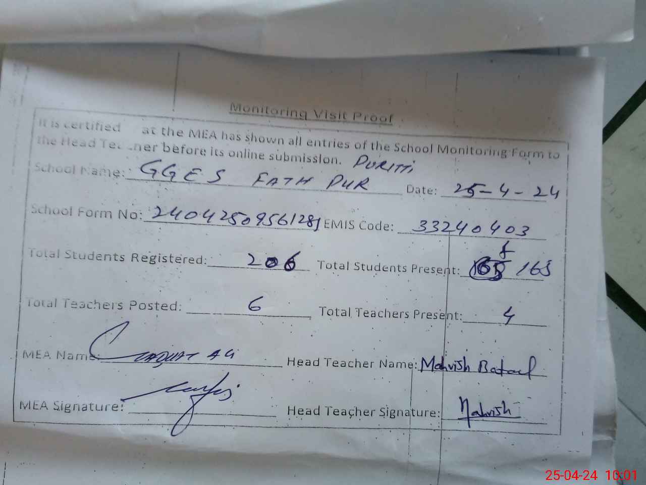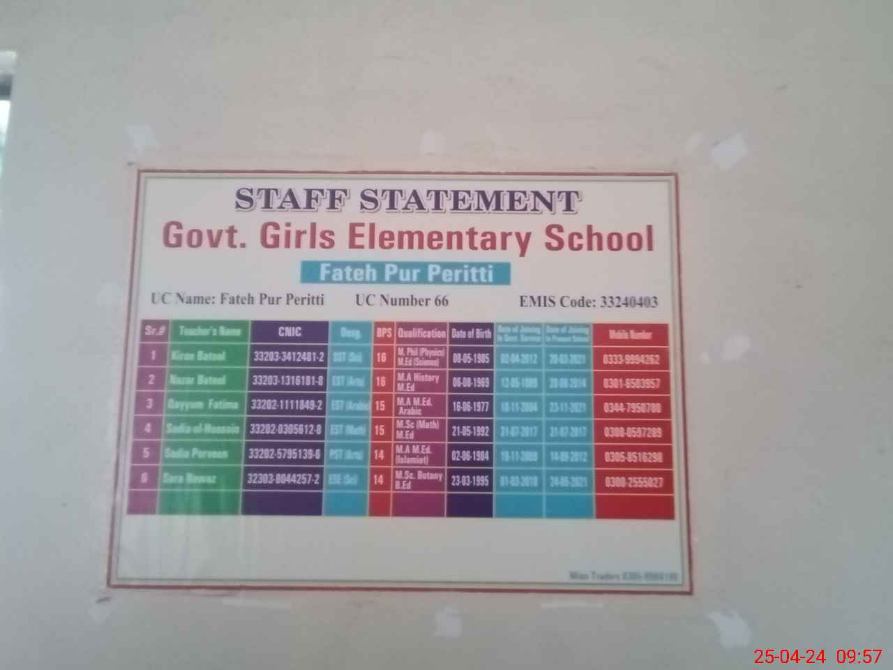 | EMIS Code: 33240403 | Name of School: GGES FATEH PUR PERITTI | |||
