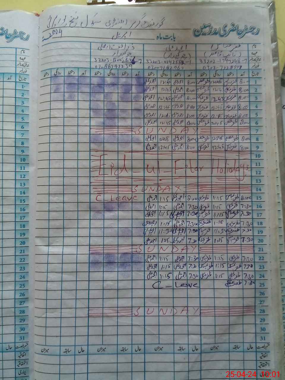 | 33**** | Ka**** Ak**** | 5 | 1 | 0 | 0 | 0 | 0 | 0 | 0 | 0 | 0 | 0 | Absent (Un-Authorized) |