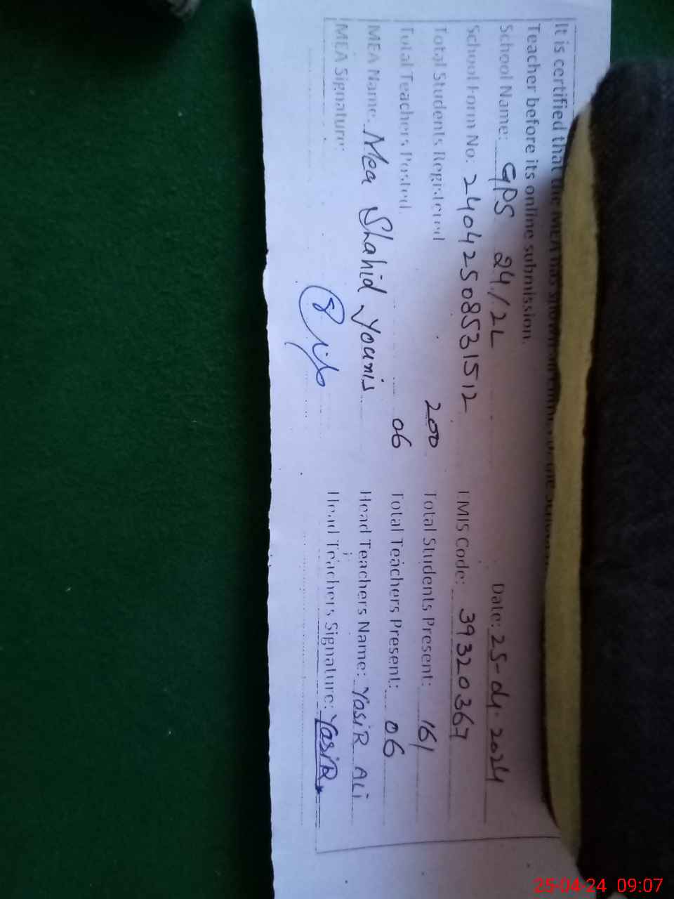 | EMIS Code: 39320367 | Name of School: GPS CHAK NO. 24/2-L | |||