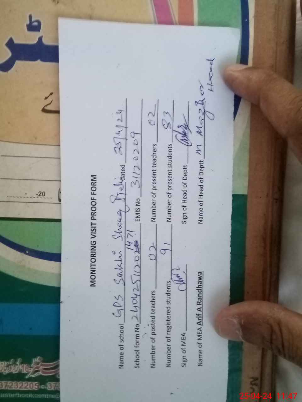 | EMIS Code: 31120209 | Name of School: GPS SAKHI SHOUQ ELAHI | |||