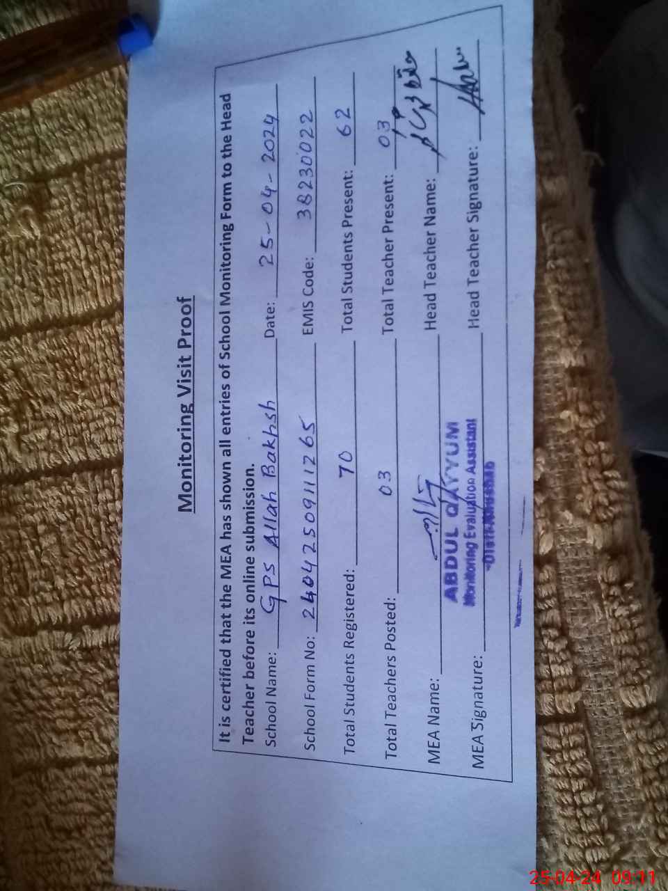 | EMIS Code: 38230022 | Name of School: GPS ALLAH BAKHSH SHUMAR | |||