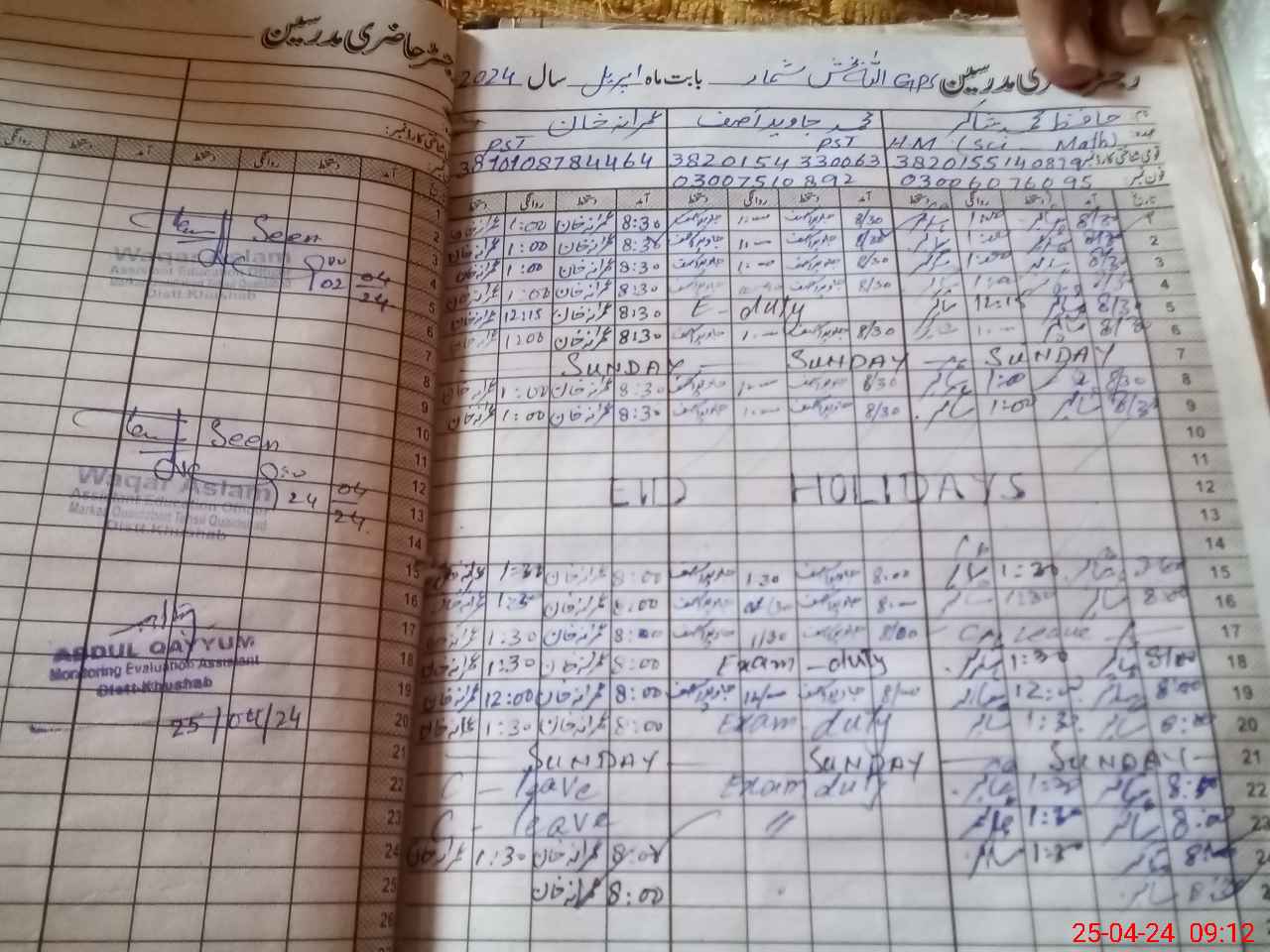 | Name: Mu**** Ja**** As**** Designation: (School Headmaster's/Headmistress's) PST Phone/Cell Number: 03**** |