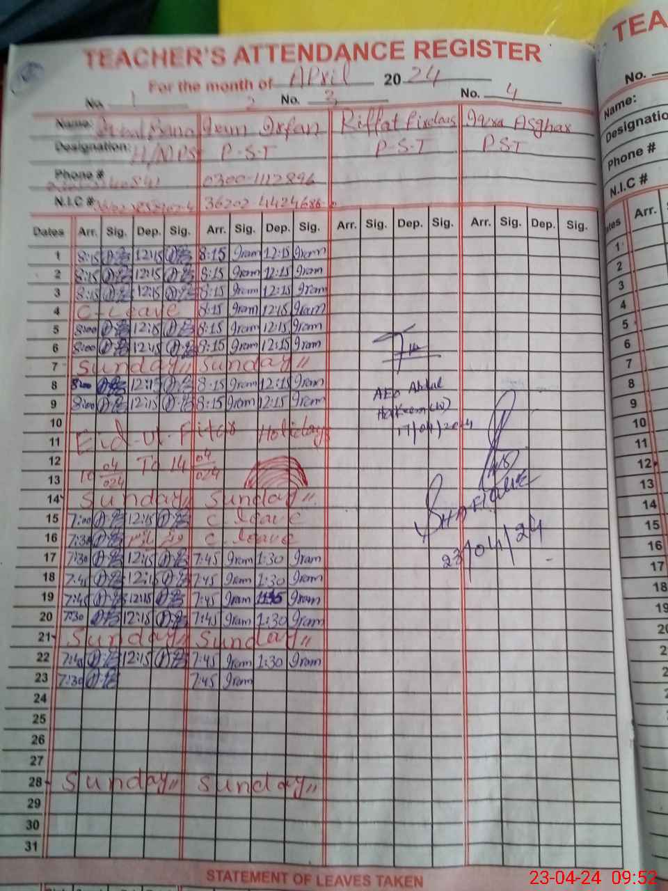 | Name: IQ**** BA**** Designation: (School Headmaster's/Headmistress's) PST Phone/Cell Number: 03**** |