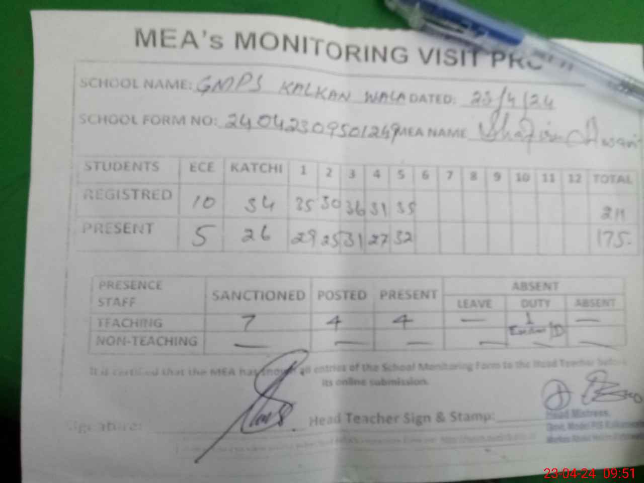 | EMIS Code: 36410464 | Name of School: GMPS KALKAN WALA, ABDUL HAKIM | |||