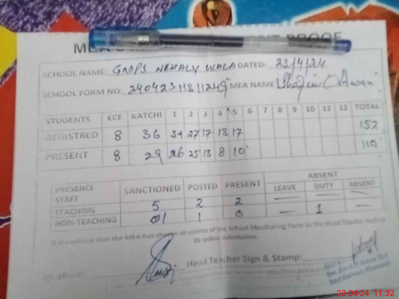 | EMIS Code: 36410439 | Name of School: GMPS NEHALAY WALA, ABDUL HAKIM | |||