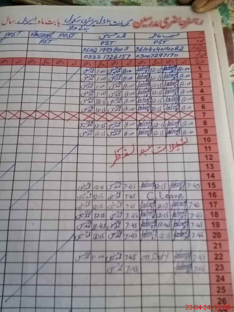 | Name: HA**** FA**** Designation: (School Headmaster's/Headmistress's) PST Phone/Cell Number: 03**** |