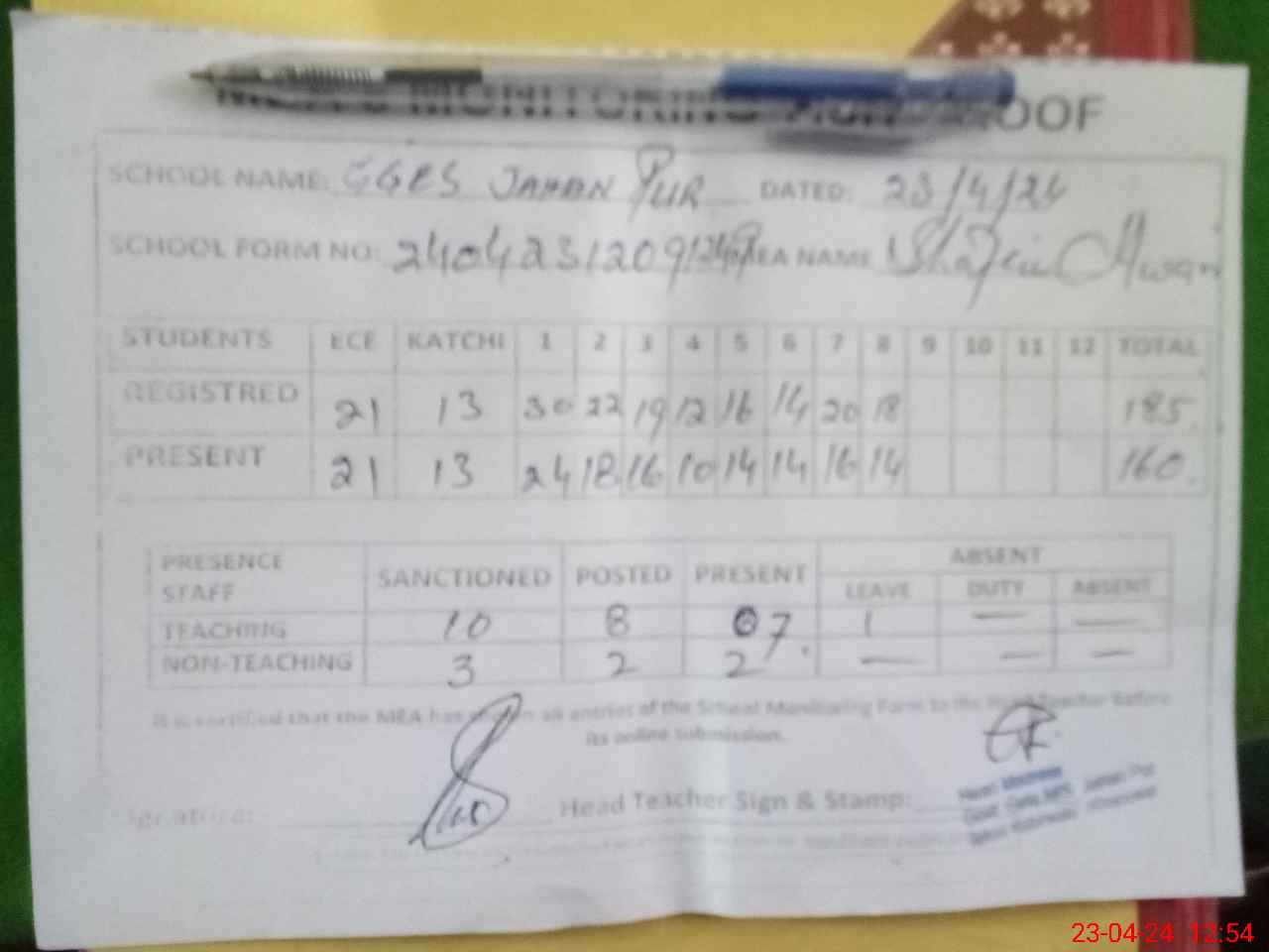 | Attendance Register | Head Teacher | MEA with School | Visit Proof |