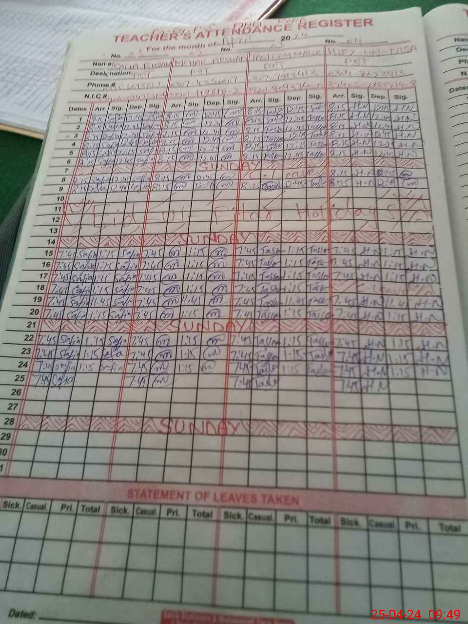 | Name: SA**** EH**** Designation: (School Headmaster's/Headmistress's) PST Phone/Cell Number: 03**** |
