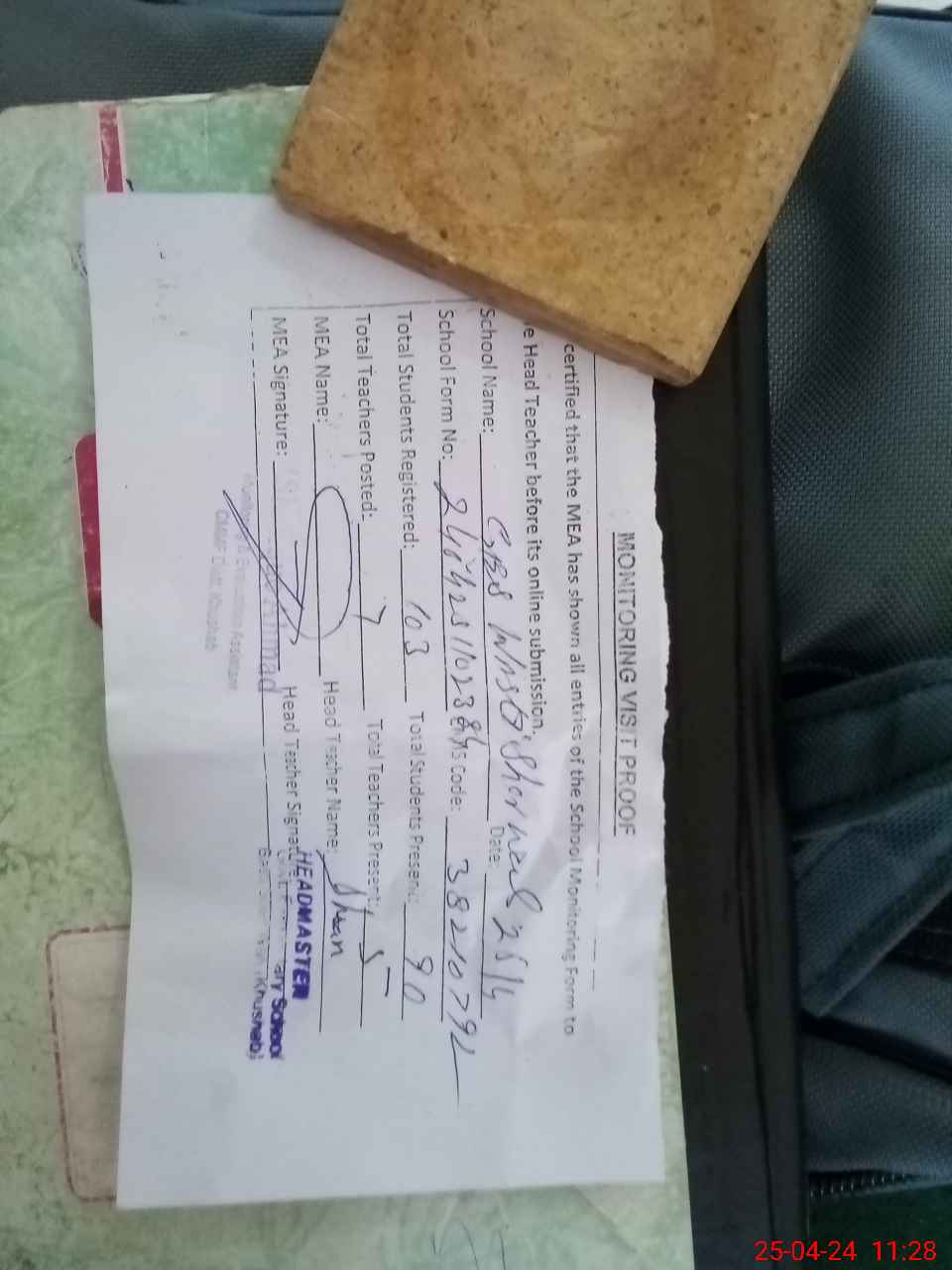 | Attendance Register | Head Teacher | MEA with School | Visit Proof |