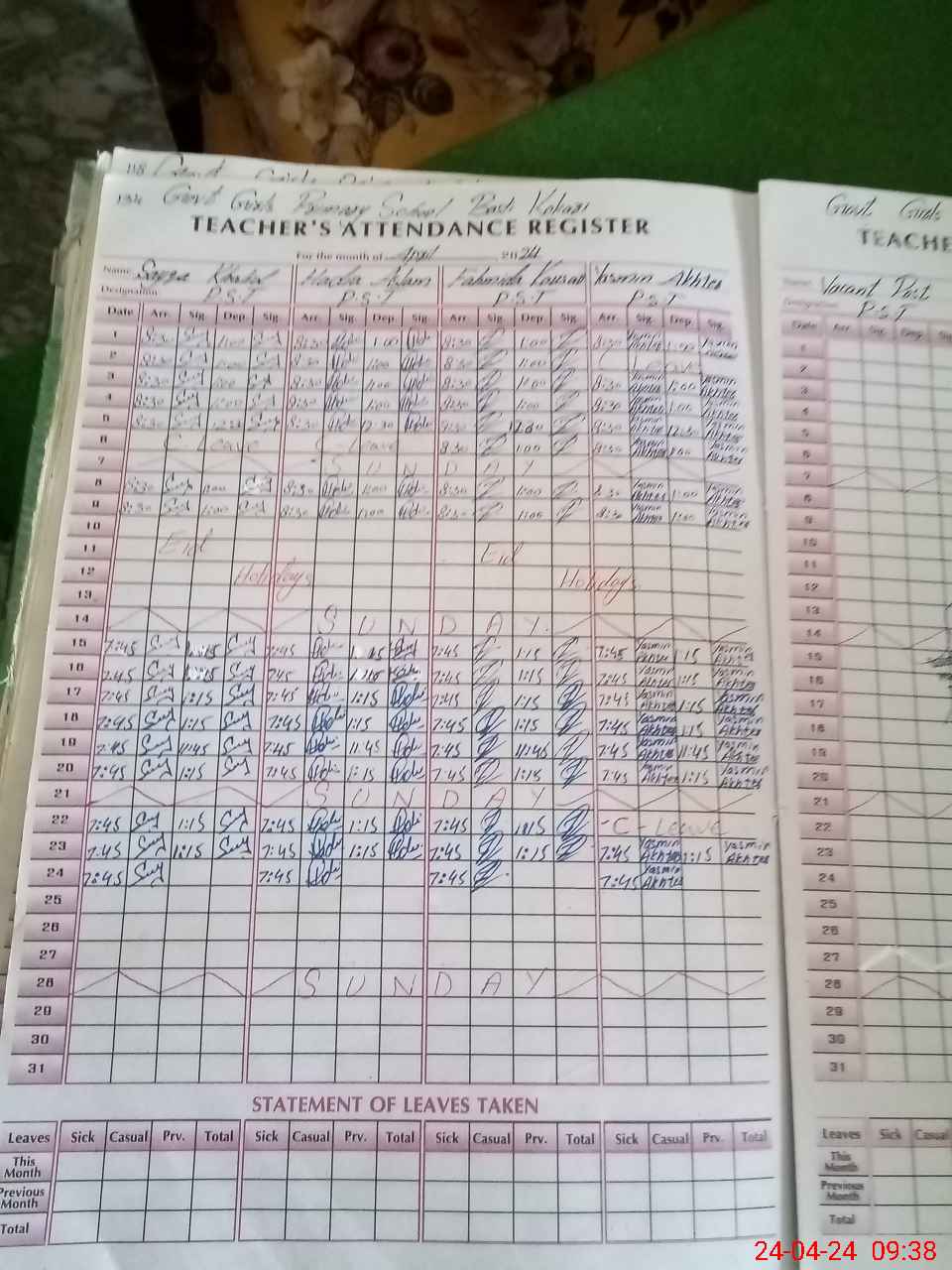 | Leave | Duty | Absent | Maternity | Medical | Ex- Pak |
