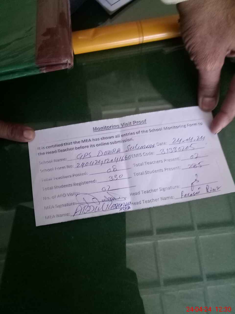 | EMIS Code: 31330205 | Name of School: GPS DERA SULEMAN | |||