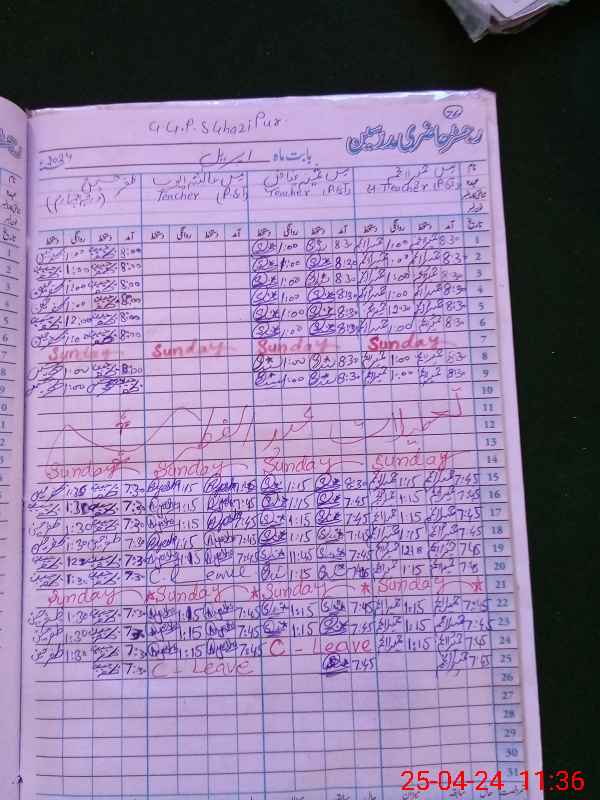 | CNIC | Full Name | Designation | R/C | Absence During Last Calender Month |