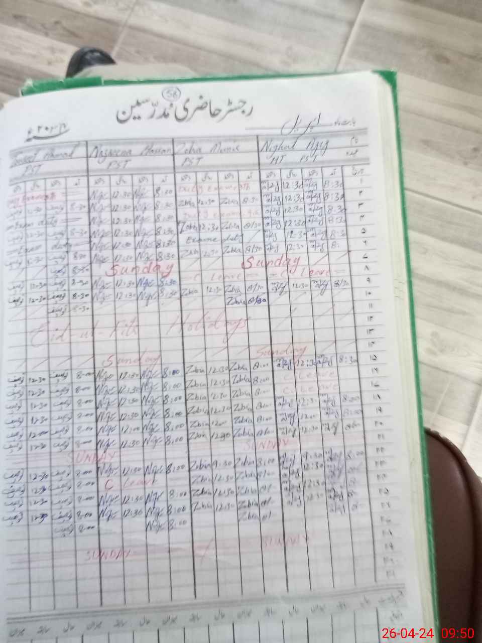 | CNIC | Full Name | Designation | R/C | Absence During Last Calender Month |