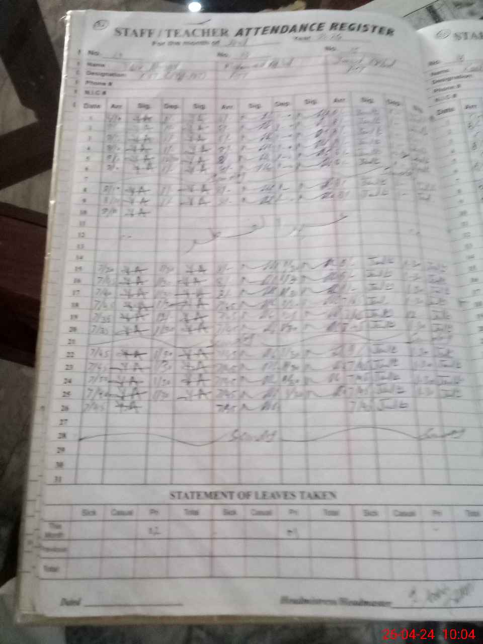 | Name: Mu**** Fa**** Ab**** Designation: (School Headmaster's/Headmistress's) HM Phone/Cell Number: 03**** |