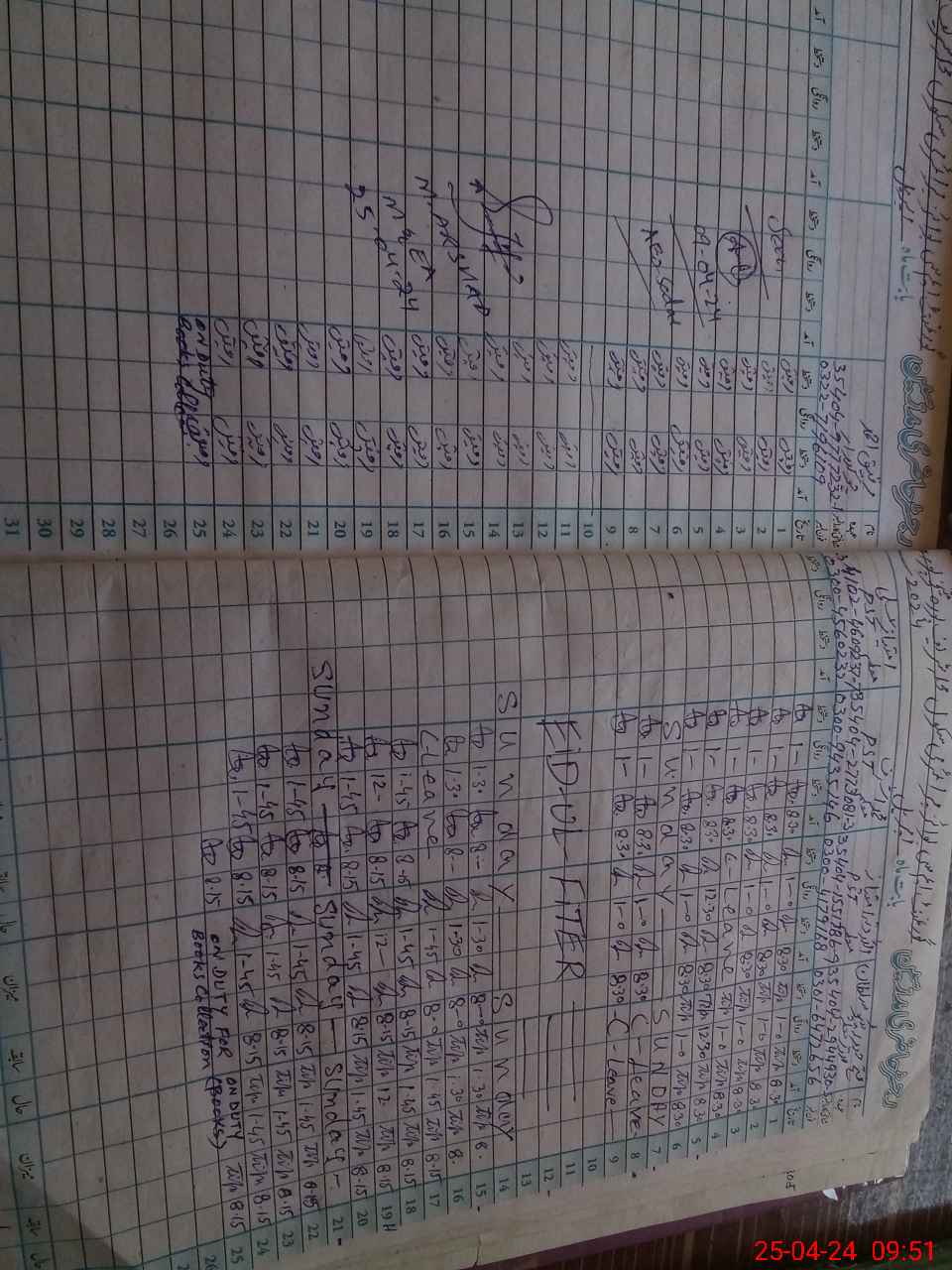 | Leave | Duty | Absent | Maternity | Medical | Ex- Pak |