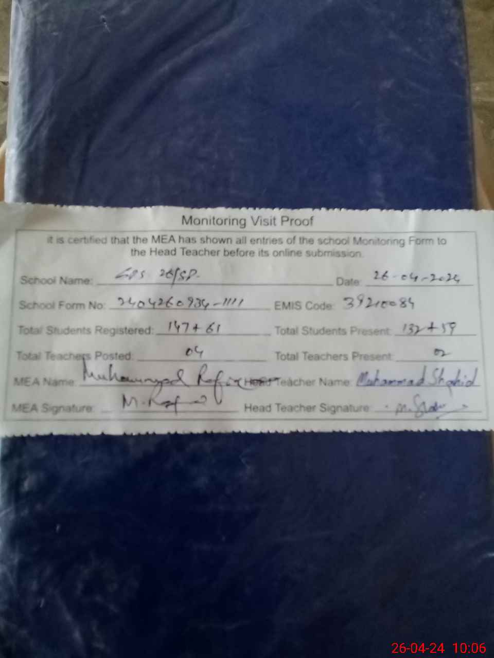 | EMIS Code: 39210084 | Name of School: GPS 26/SP PAKPATTAN | |||