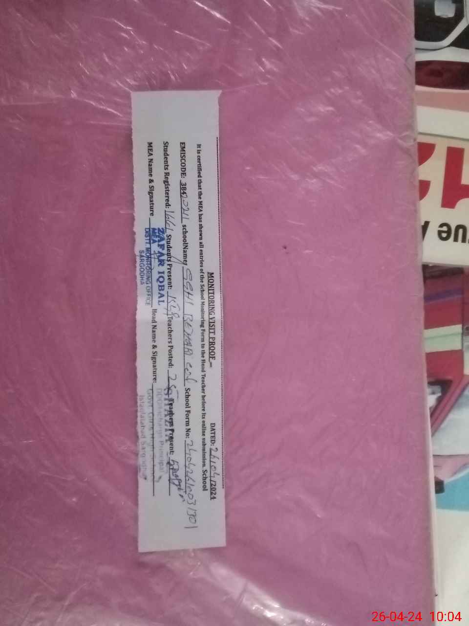 | Monitoring Date: 26-04-2024 | Start Time: 26-04-2024 09:40 AM | End Time: 26-04-2024 10:05 AM | Name of MEA: ZA**** IQ**** | |