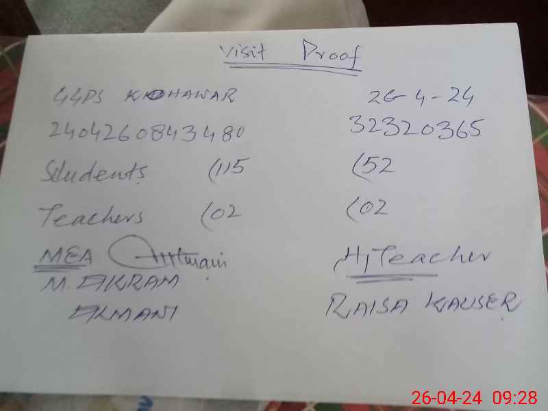| EMIS Code: 32320365 | Name of School: GGPS KOHAWAR | |||