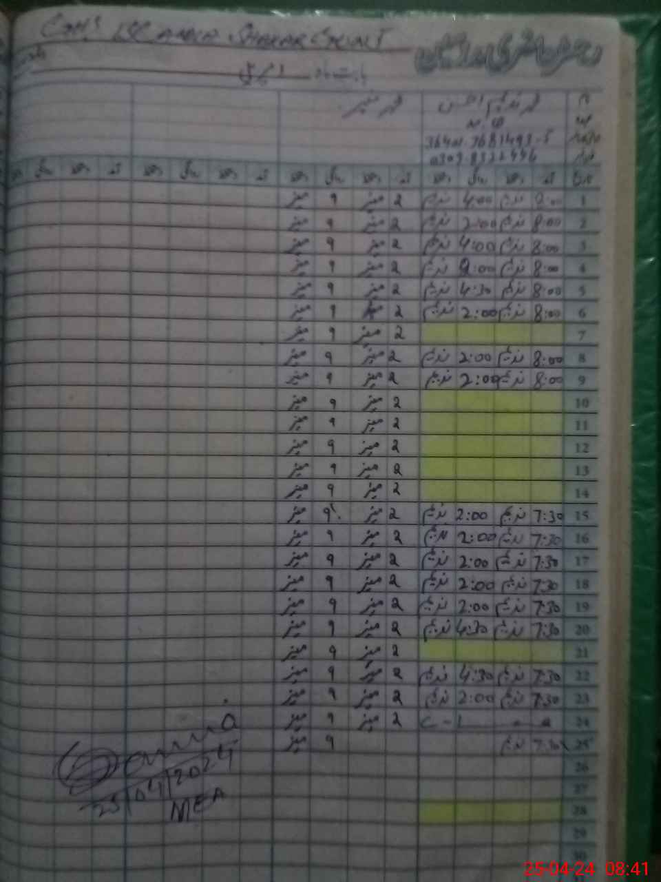 | Monitoring Date: 25-04-2024 | Start Time: 25-04-2024 09:02 AM | End Time: 25-04-2024 10:11 AM | Name of MEA: Ha**** Ul**** Ur**** Ba**** Al**** | |