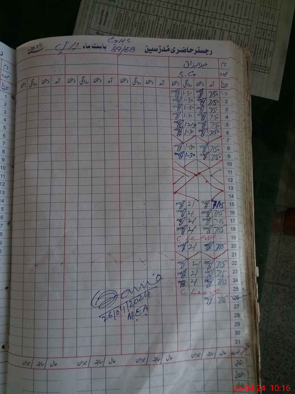| CNIC | Full Name | Designation | R/C | Absence During Last Calender Month |