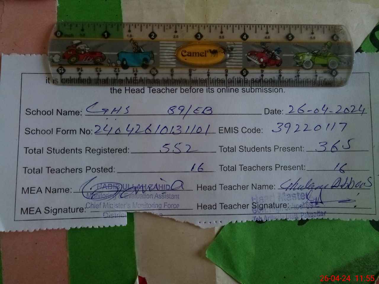 | EMIS Code: 39220117 | Name of School: GHS CHAK NO. 89 EB | |||