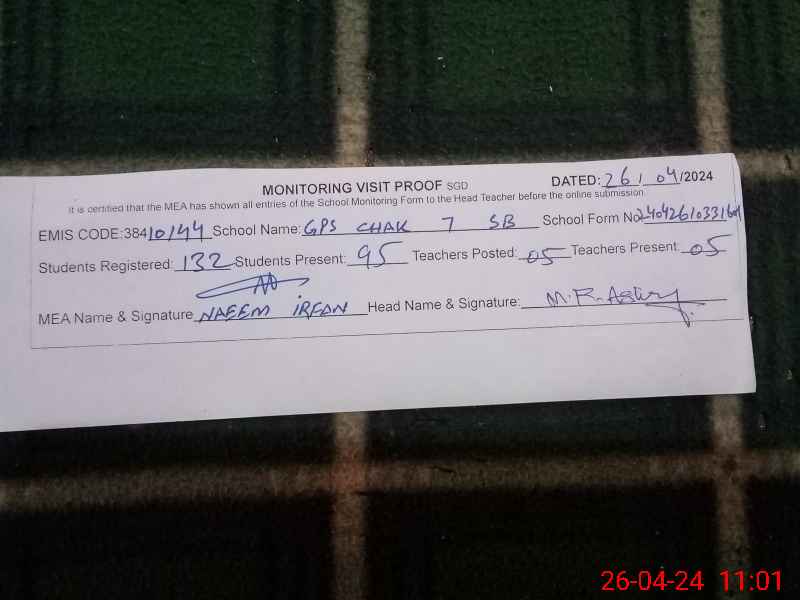 | EMIS Code: 38410144 | Name of School: GPS CHAK NO.7 SB | |||
