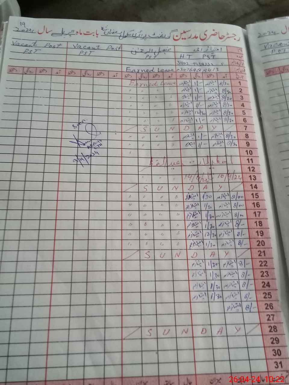 | Name: IM**** AH**** Designation: (School Headmaster's/Headmistress's) PST Phone/Cell Number: 03**** |