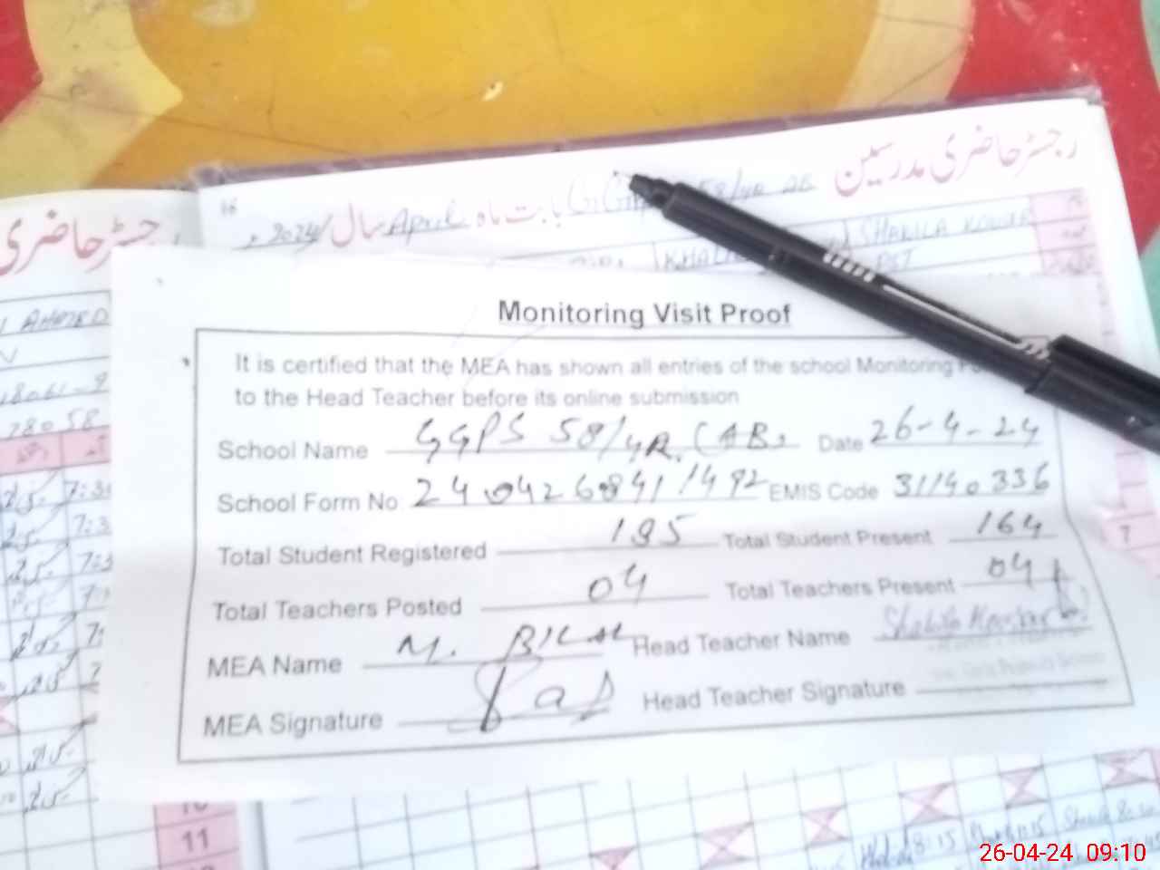 | EMIS Code: 31140336 | Name of School: GGPS CHAK NO. 58/4-R AB | |||