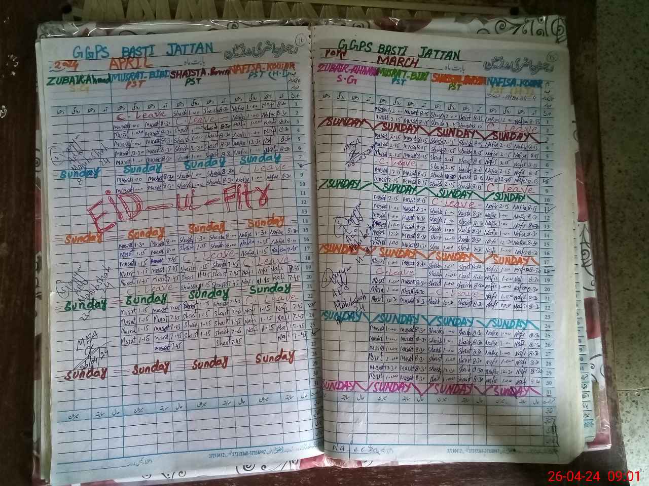 | Leave | Duty | Absent | Maternity | Medical | Ex- Pak |