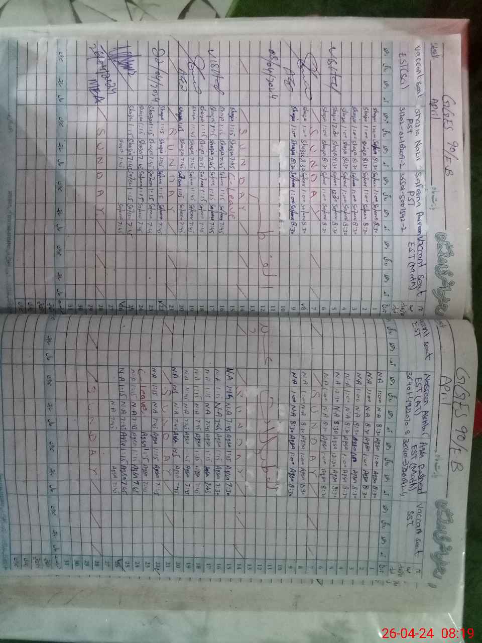 | Monitoring Date: 26-04-2024 | Start Time: 26-04-2024 08:14 AM | End Time: 26-04-2024 09:05 AM | Name of MEA: NA**** AB**** | |