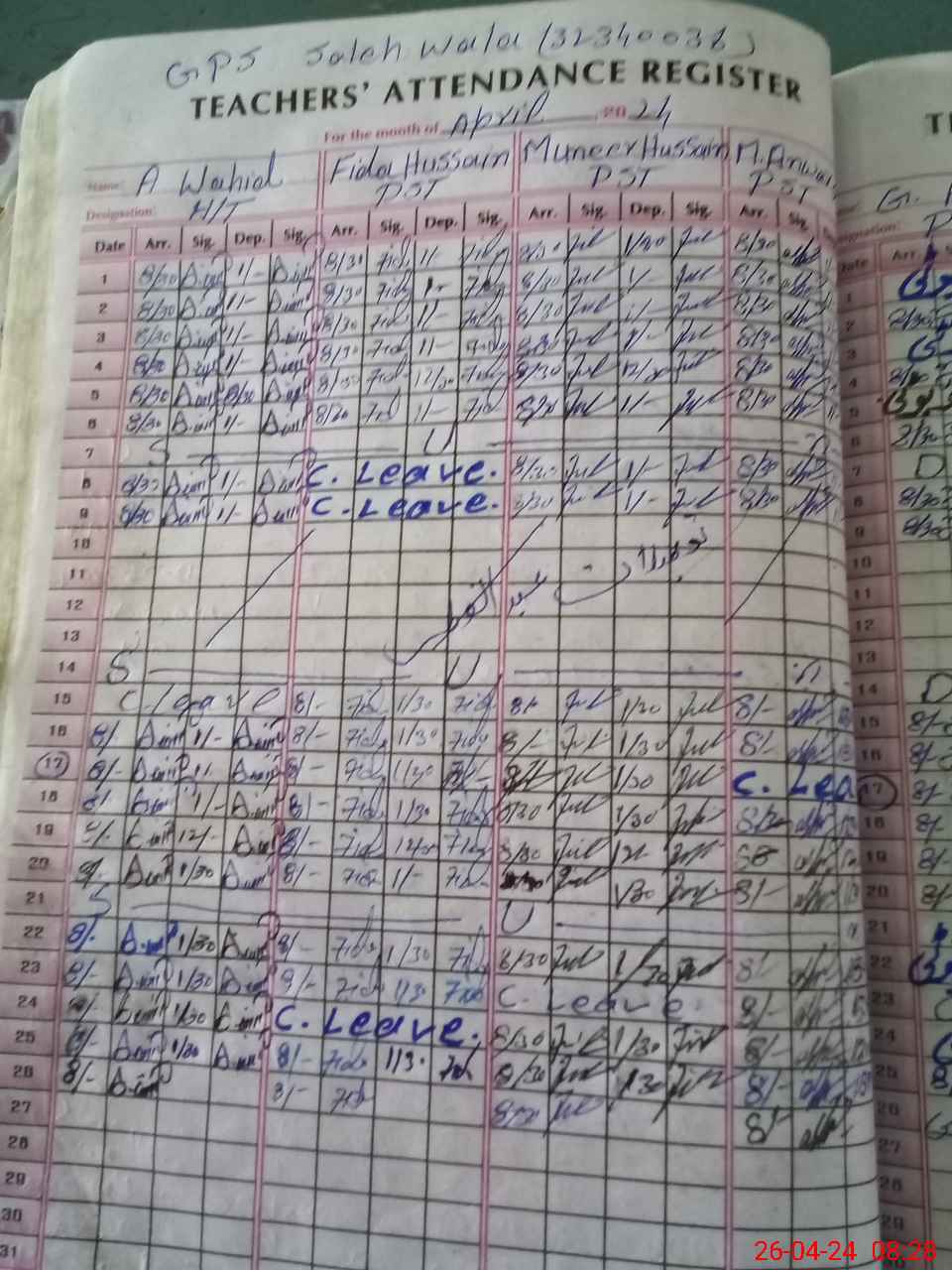 | 32**** | Gh**** Ak**** | PST | Regular | 1 | 13 | 0 | 0 | 0 | 0 | 0 | 0 | 1 | Exam Duty |
