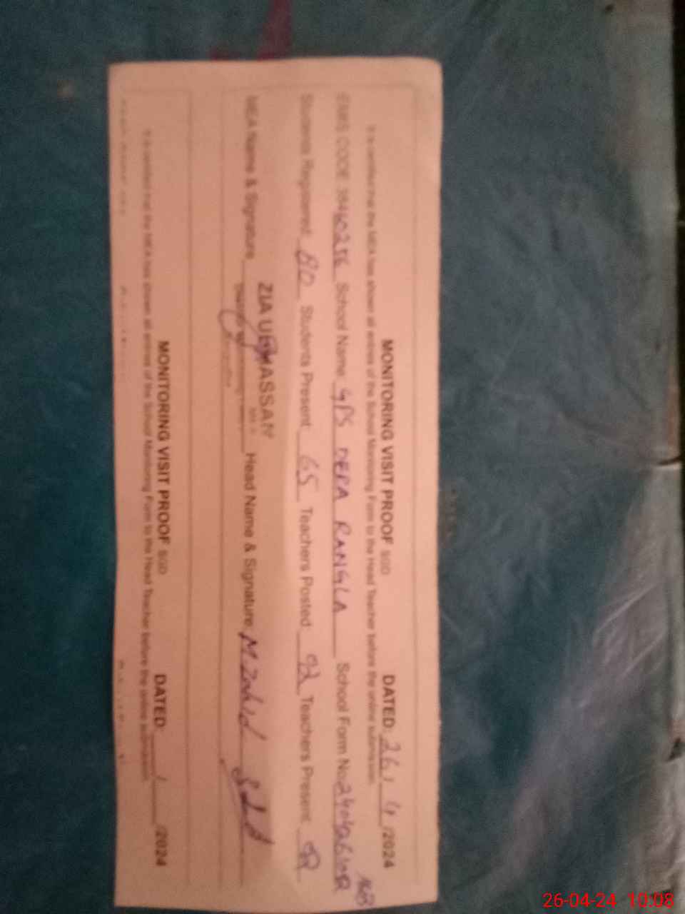 | Attendance Register | Head Teacher | MEA with School | Visit Proof |