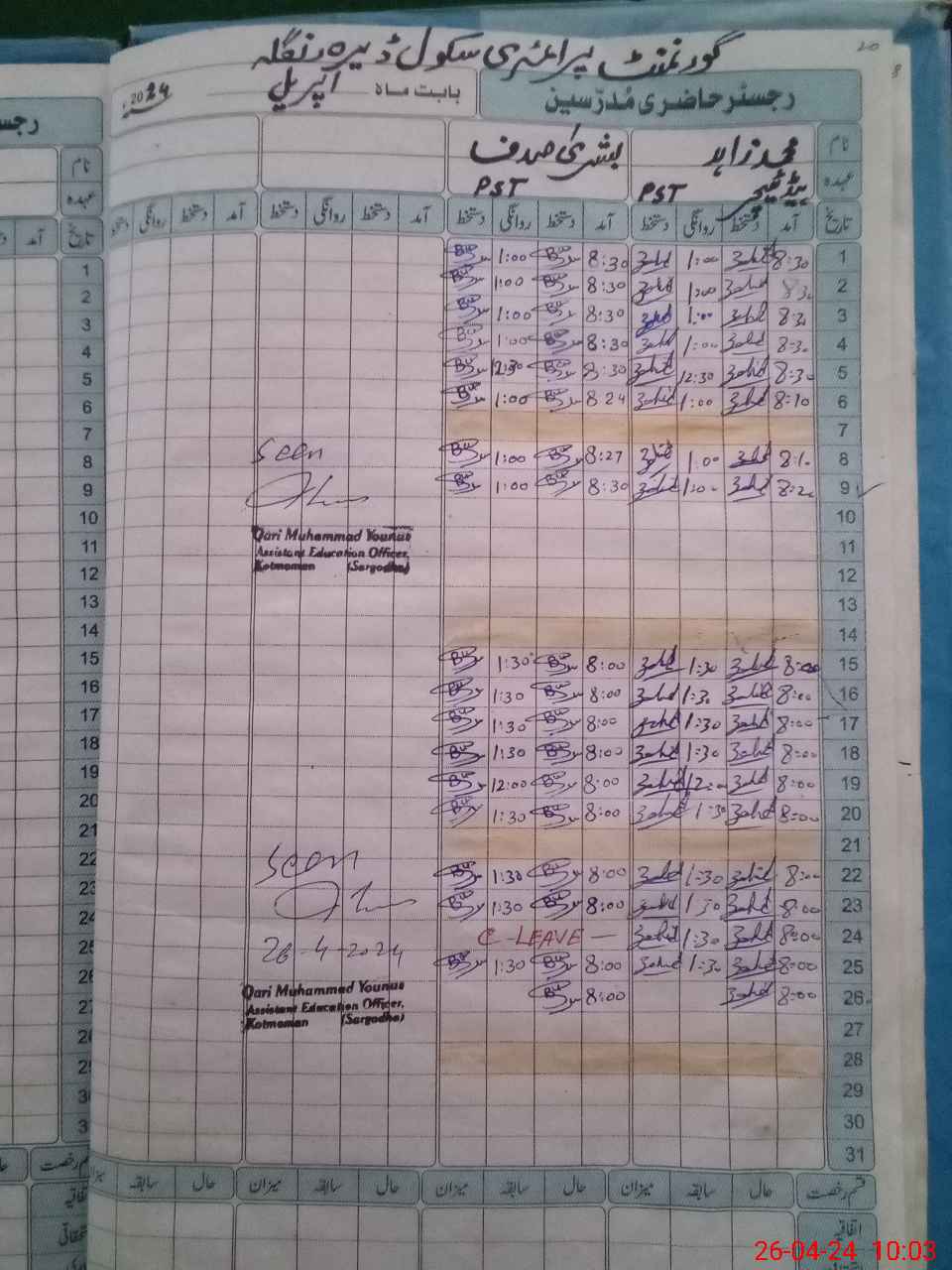 | Name: MU**** ZA**** Designation: (School Headmaster's/Headmistress's) PST Phone/Cell Number: 03**** |