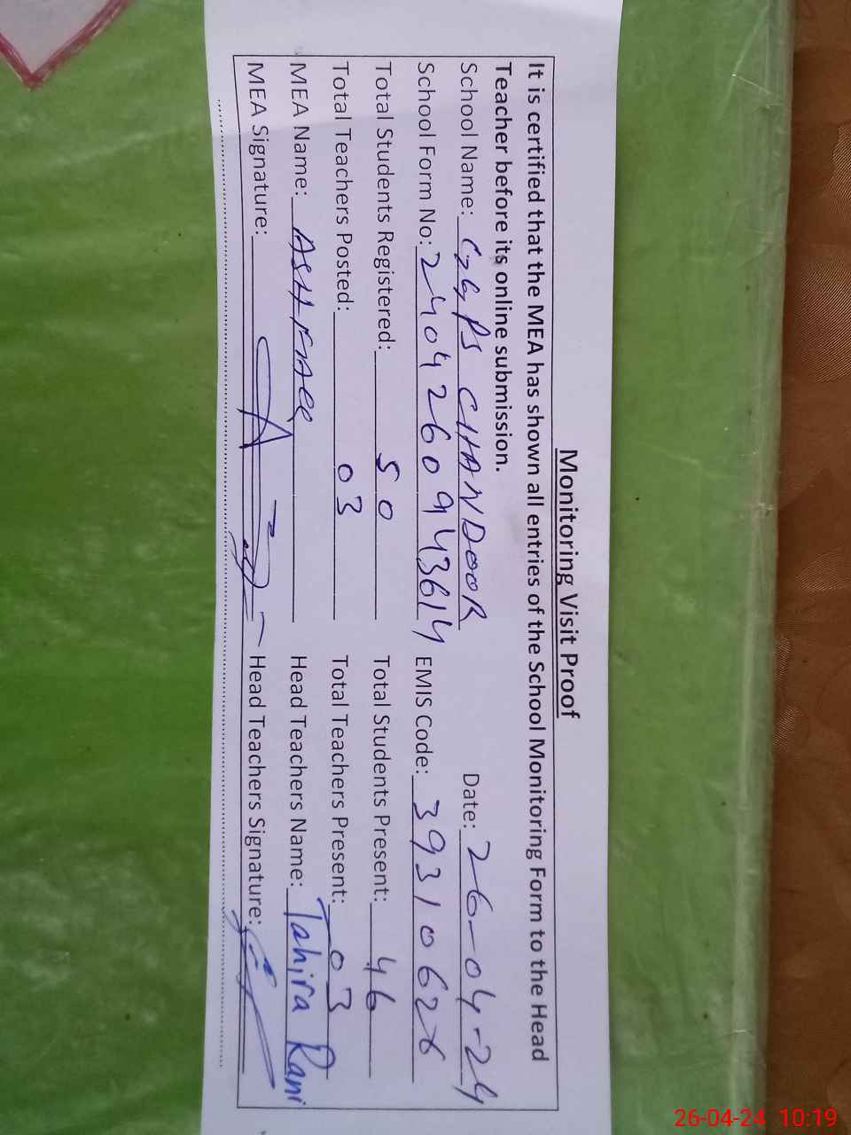 | EMIS Code: 39310626 | Name of School: GGPS CHANDOOR VIA BASEER PUR | |||