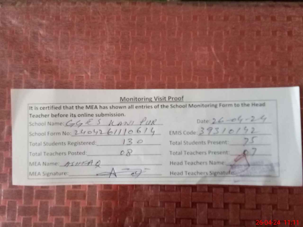 | EMIS Code: 39310142 | Name of School: GGES KANI PUR | |||