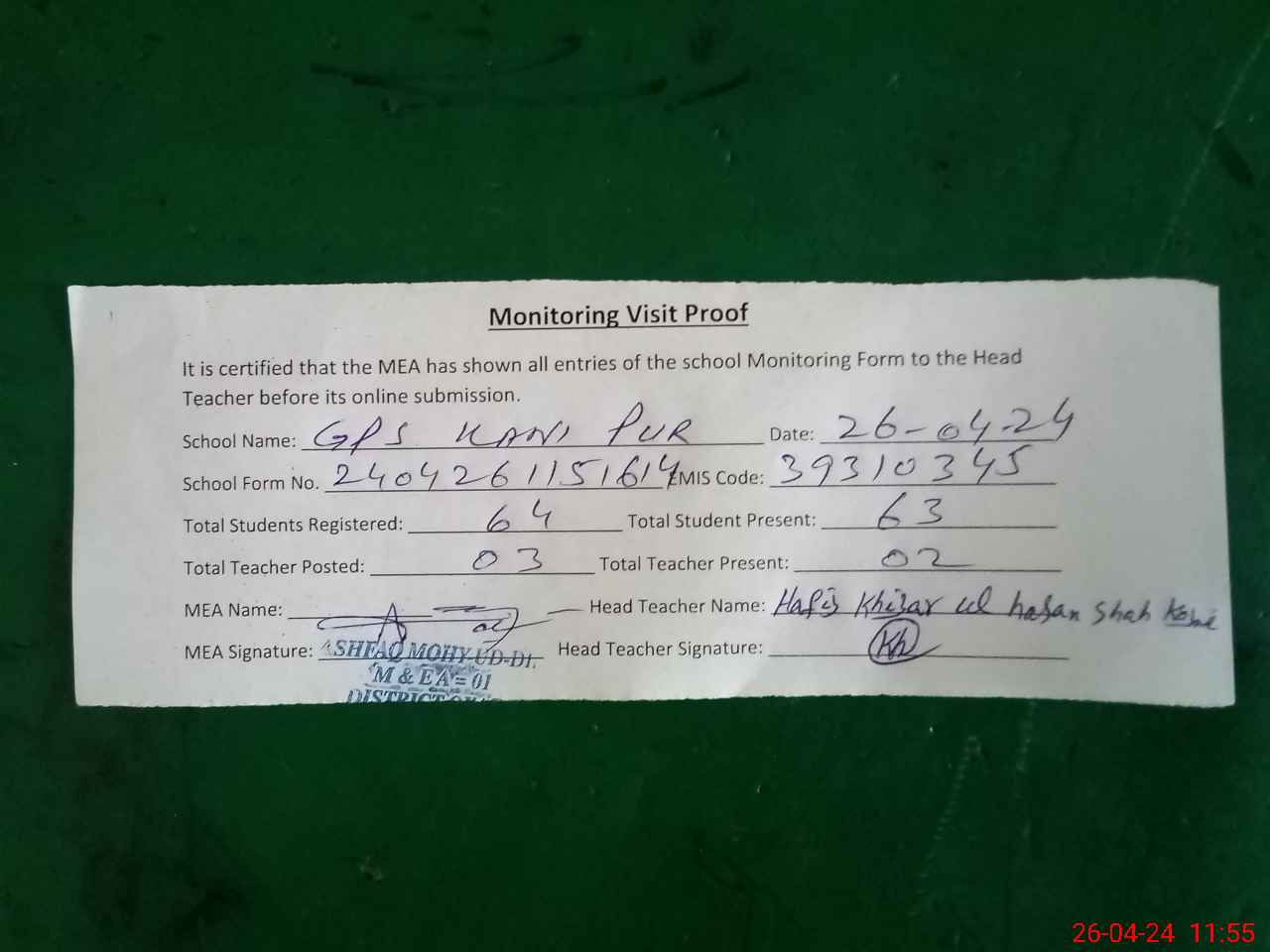 | EMIS Code: 39310345 | Name of School: GPS KANI PUR | |||