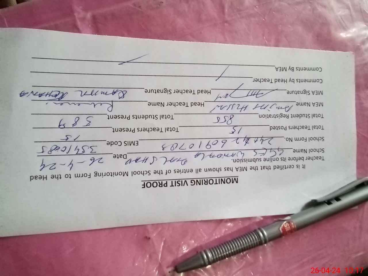 | Certified that this School was Inspected by the Undersigned MEA/DMO Today and the Information Stated Above is as Per Record. | |||||