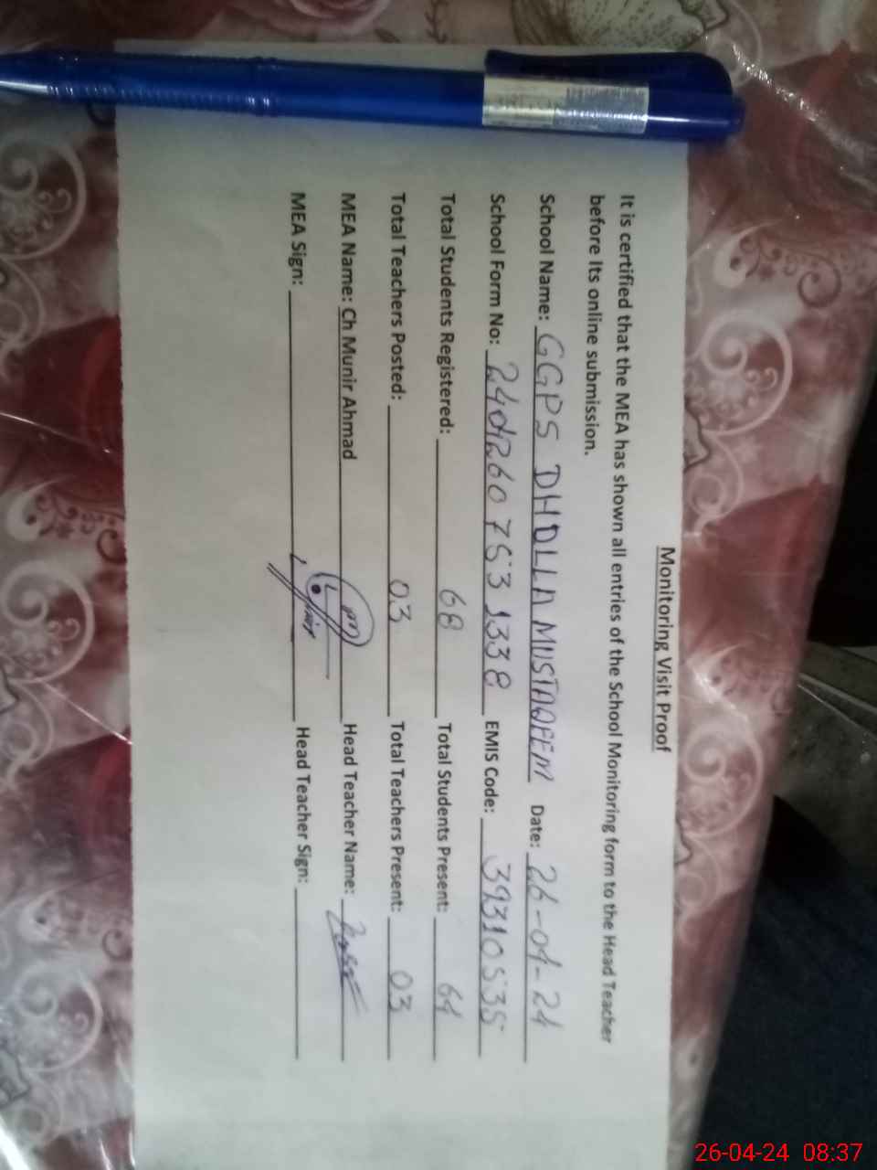 | EMIS Code: 39310535 | Name of School: GGPS DHOLLA MUSTAQEEM | |||