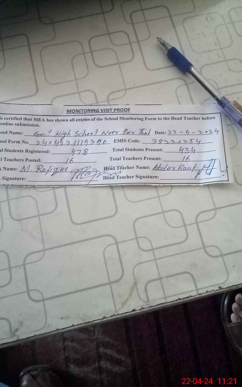 | EMIS Code: 38220254 | Name of School: GHS NOORPUR THAL | |||